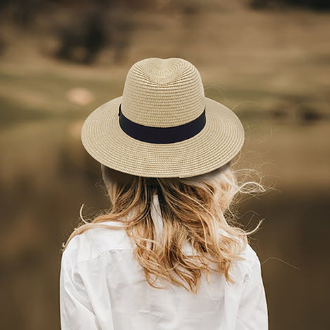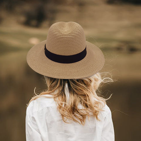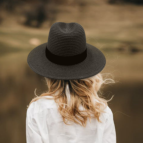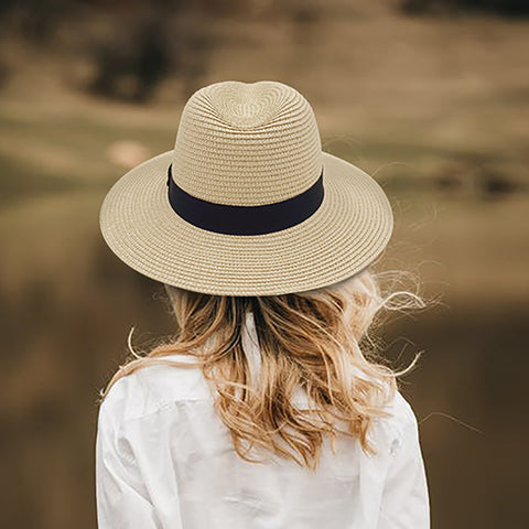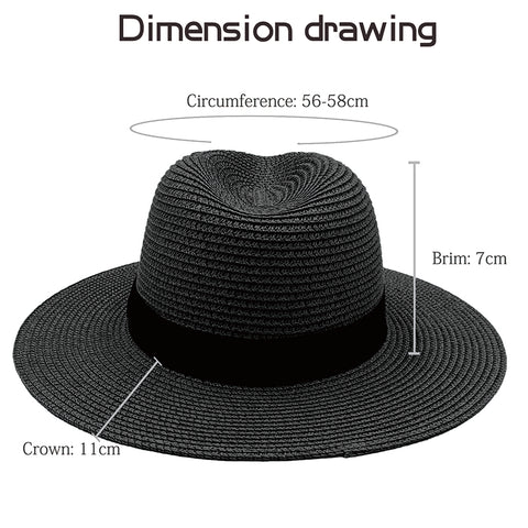 ACCEHUT,FOLDABLE STRAW SUMMER SUN HAT ,SPF50 WIDE BRIM ,STYLISH PANAMA ,BEACH HAT, BOWKNOT DECORATION FEDORA